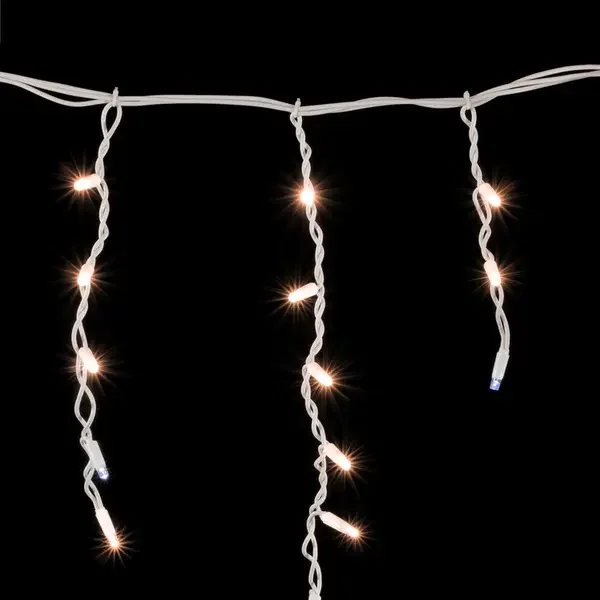 Гирлянда Бахрома 3,1 x 0,5 м Экстра Тепло-Белая с Мерцанием Белого Диода 220В, 120 LED, Провод Белый Каучук, IP65