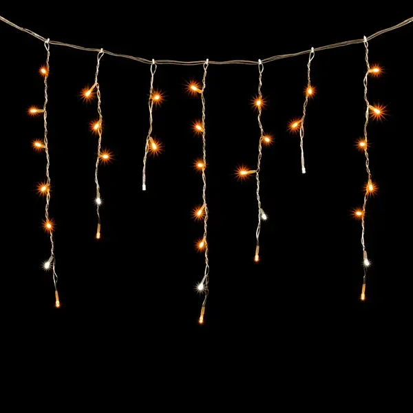 Гирлянда Бахрома 3,1 x 0,5 м Желтая с Мерцанием Белого Диода 220В, 150 LED, Провод Прозрачный ПВХ, IP54