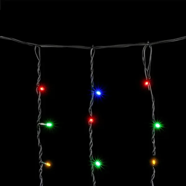 Гирлянда Бахрома 3,2 x 0,9 м Разноцветная 220В, 168 LED, Провод Черный Каучук, IP54