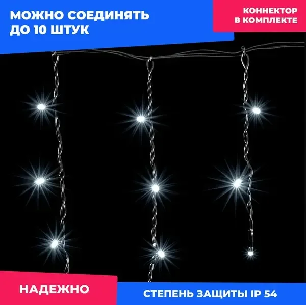 Гирлянда Бахрома 4,9 x 0,5 м Белая 220В, 240 LED, Провод Черный ПВХ, IP54