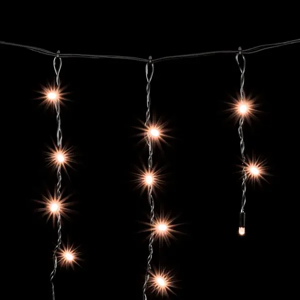 Гирлянда Бахрома с Колпачком 3,1 x 0,5 м Экстра Тепло-Белая 220В, 120 LED, Провод Черный ПВХ, IP65