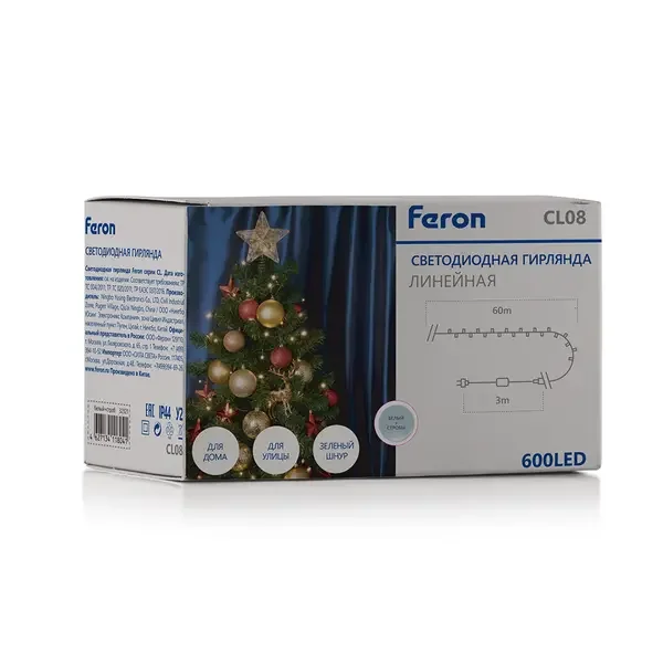 Гирлянда линейная 230V 600 LED 60м, 5000K, с эффектом стробов, IP 44, шнур 3м , CL08
