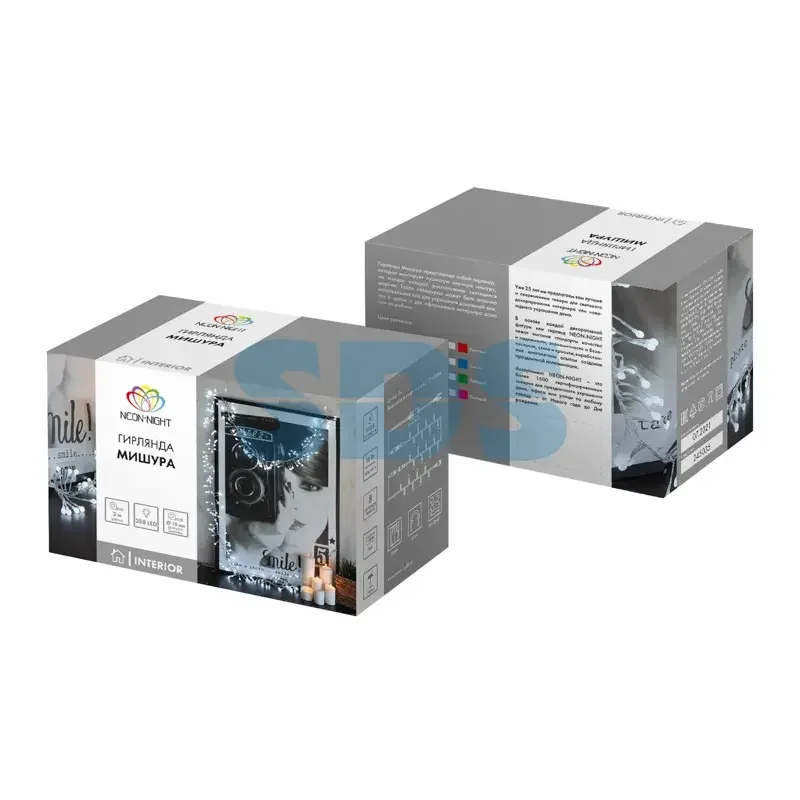 Гирлянда «Мишура LED» 3 м, темно-зеленый ПВХ, 288 диодов, цвет белый + теплый белый
