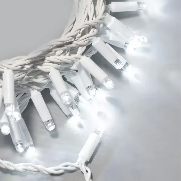 Гирлянда Нить 10м Белая 220В, 100 LED, Провод Белый Каучук 2,3мм, IP65