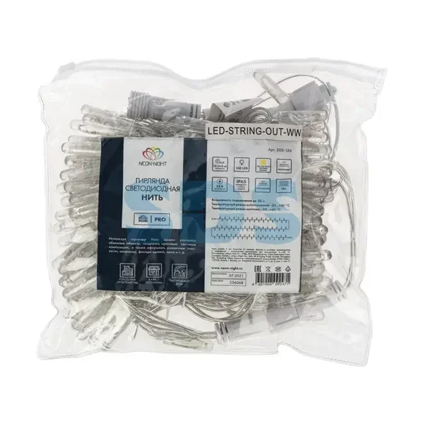Гирлянда Нить 10м, постоянное свечение, Прозрачный ПВХ, 24В, цвет: Тёплый белый