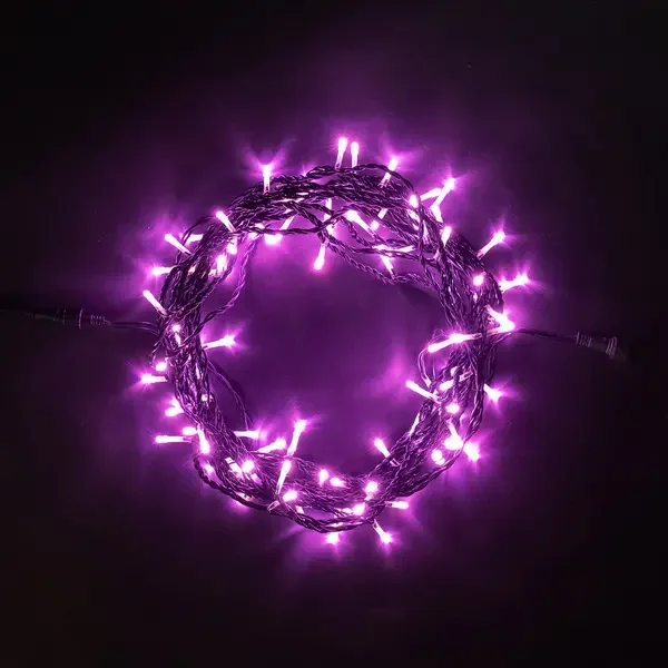 Гирлянда Нить 10м Розовая 24В, 100 LED, Провод Черный ПВХ, IP54