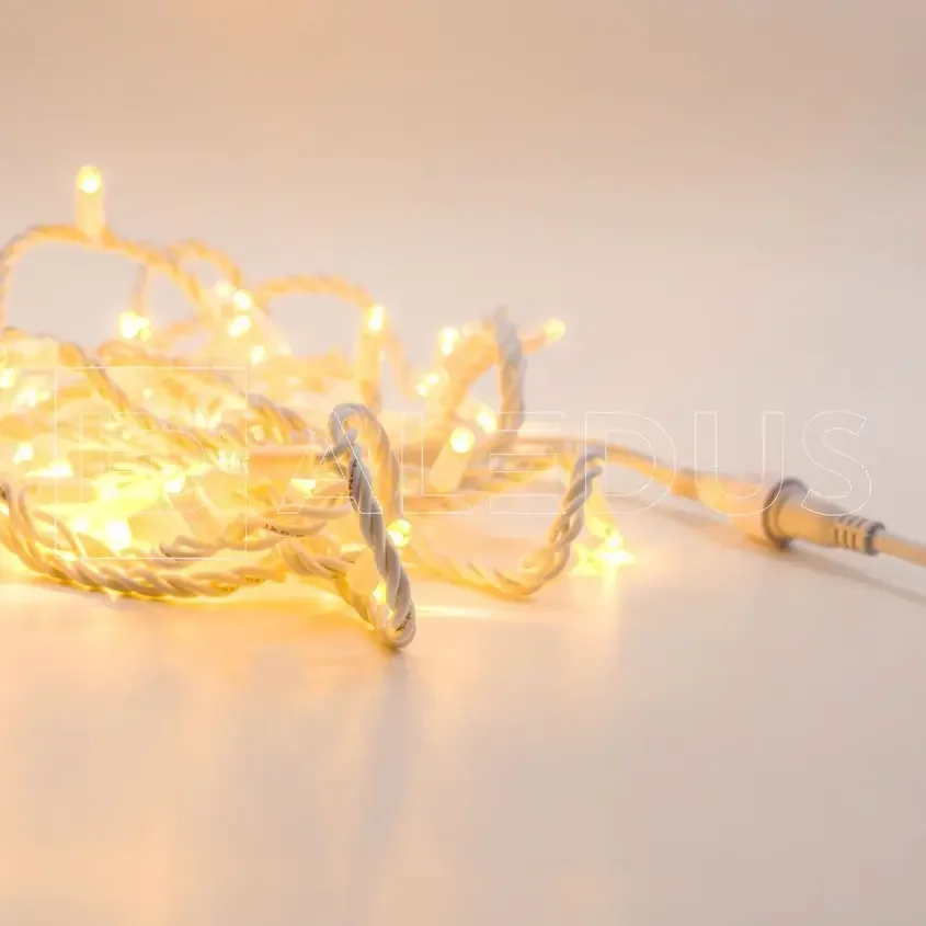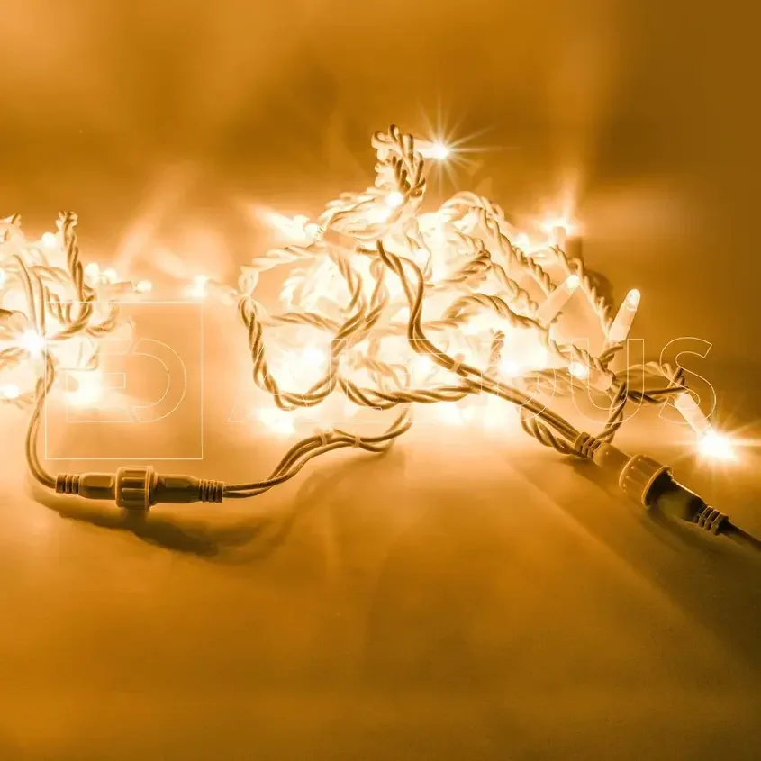 Гирлянда (Нить) ALEDUS 10 м, белый провод, каучук (резина), теплый белый, без мерцания