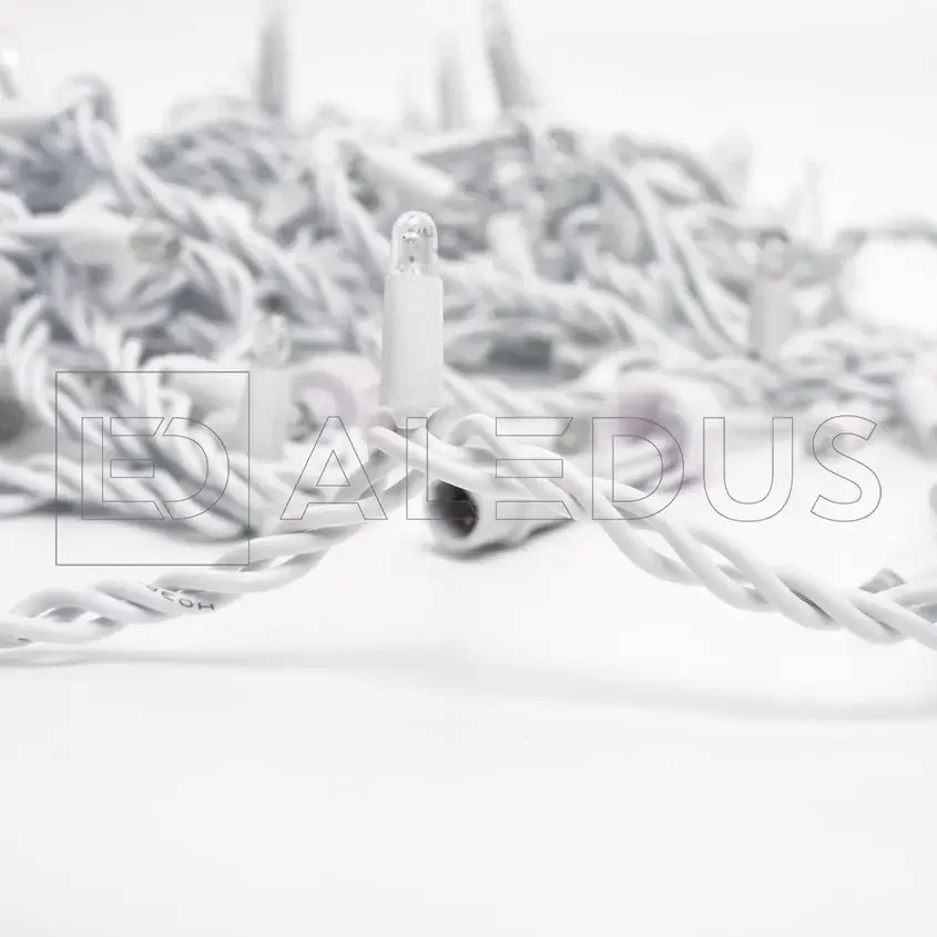 Гирлянда (Нить) ALEDUS 10 м, белый провод, ПВХ, теплый белый, без мерцания