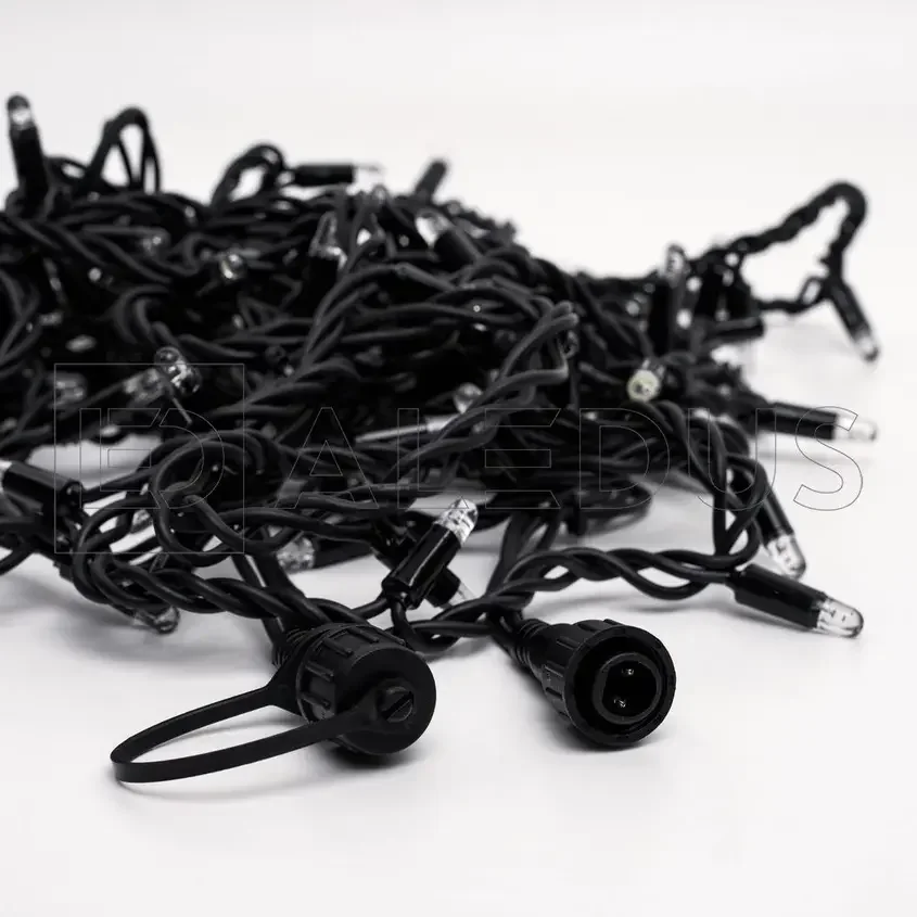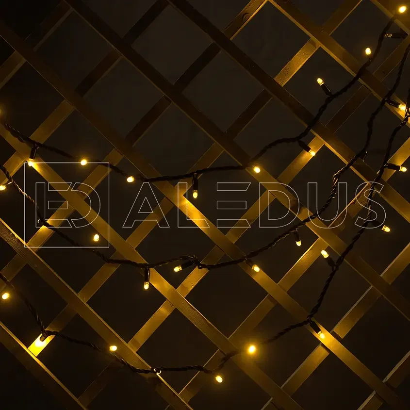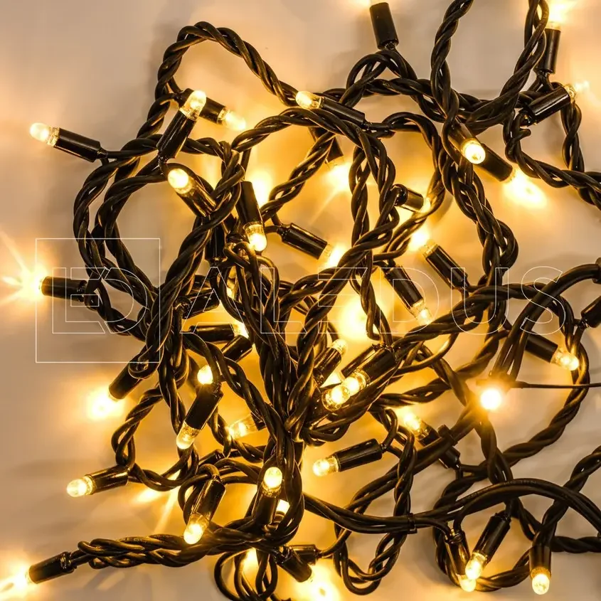 Гирлянда (Нить) ALEDUS 10 м, черный провод, каучук (резина), теплый белый, без мерцания