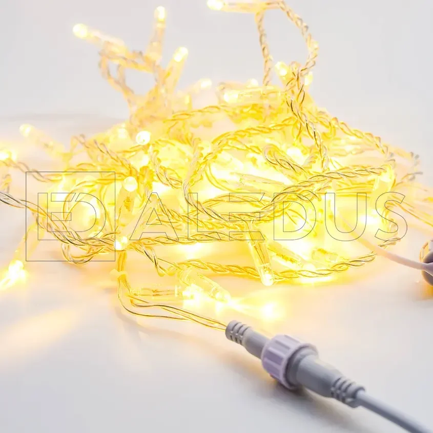 Гирлянда (Нить) ALEDUS 10 м, прозрачный провод, ПВХ, теплый белый, без мерцания