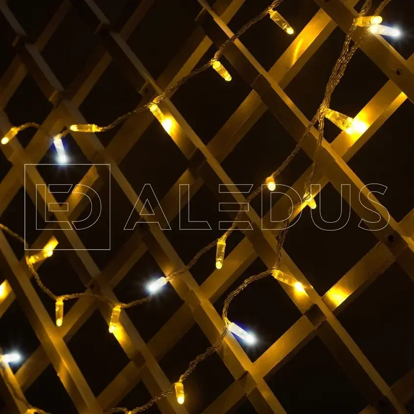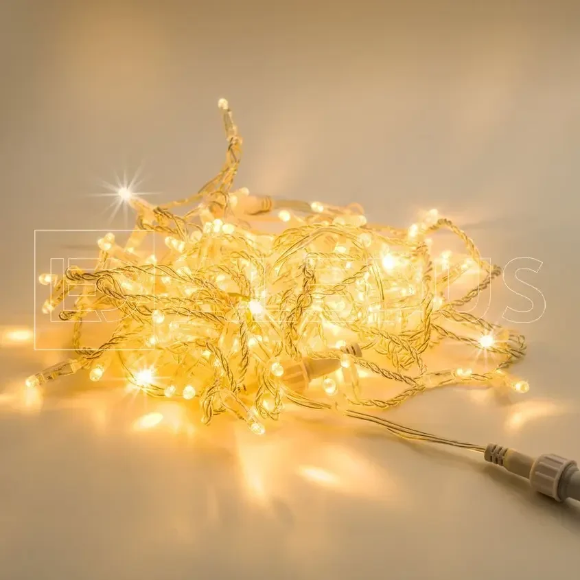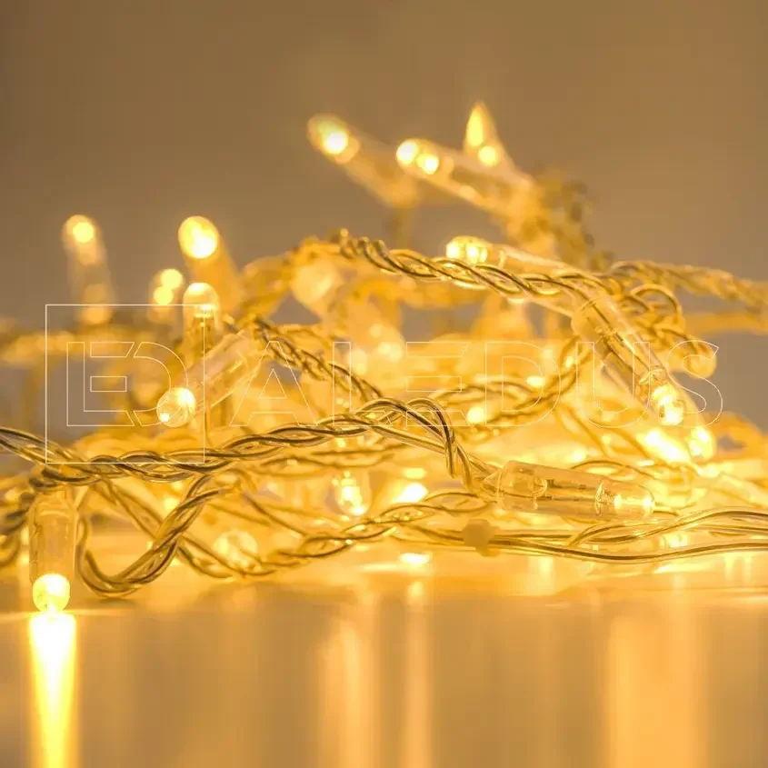 Гирлянда (Нить) ALEDUS 10 м, прозрачный провод, ПВХ, теплый белый, с мерцанием