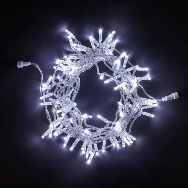 Гирлянда Нить с Колпачком 10м Белая с Мерцанием Белого Диода 24В, 100 LED, Провод Прозрачный ПВХ, IP65
