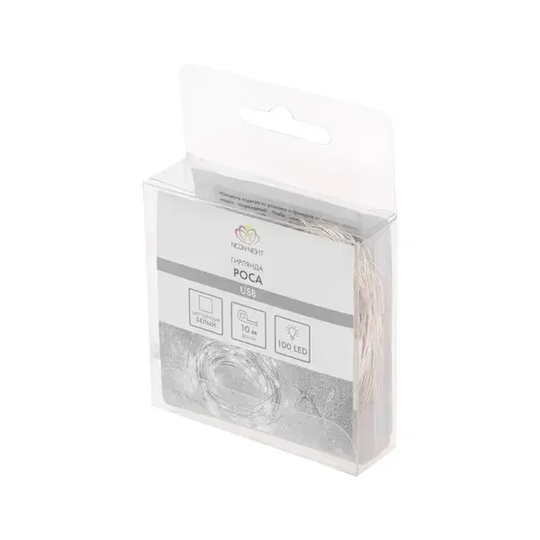 Гирлянда Роса 10 м, 100 LED, USB, белое свечение NEON-NIGHT