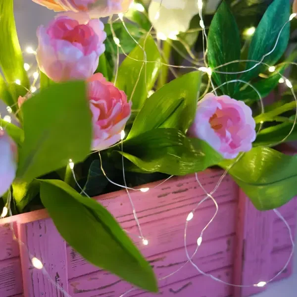 Светодиодная гирлянда «Роса» – прекрасный декоративный элемент, светящийся разными огоньками и создающий атмосферу праздника и уюта. Это отличный способ акцентировать внимание на отдельных предметах интерьера, создать неповторимый арт-объект или использовать в качестве дополнительной подсветки. Гирлянда может эффектно подчеркнуть красоту картины, вазы с цветами, статуэтки или украсить небольшую елочку. Часто «Роса» украшает не только интерьер, но и с успехом применяется на торговых площадках и ярмарках для привлечения внимания к продукции. Гирлянда состоит из тонкого провода длиной 10 метров, с расположенными на нем 100 теплыми белыми долговечными светодиодами. В качестве питания у данной модели гирлянды выступает USB-разъем, который крепится на дополнительный провод длиной 20 см. Создайте атмосферу праздника с помощью светодиодной гирлянды «Роса»!