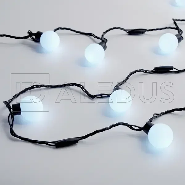 Гирлянда с шариками ALEDUS 5 м, черный провод, ПВХ, белый