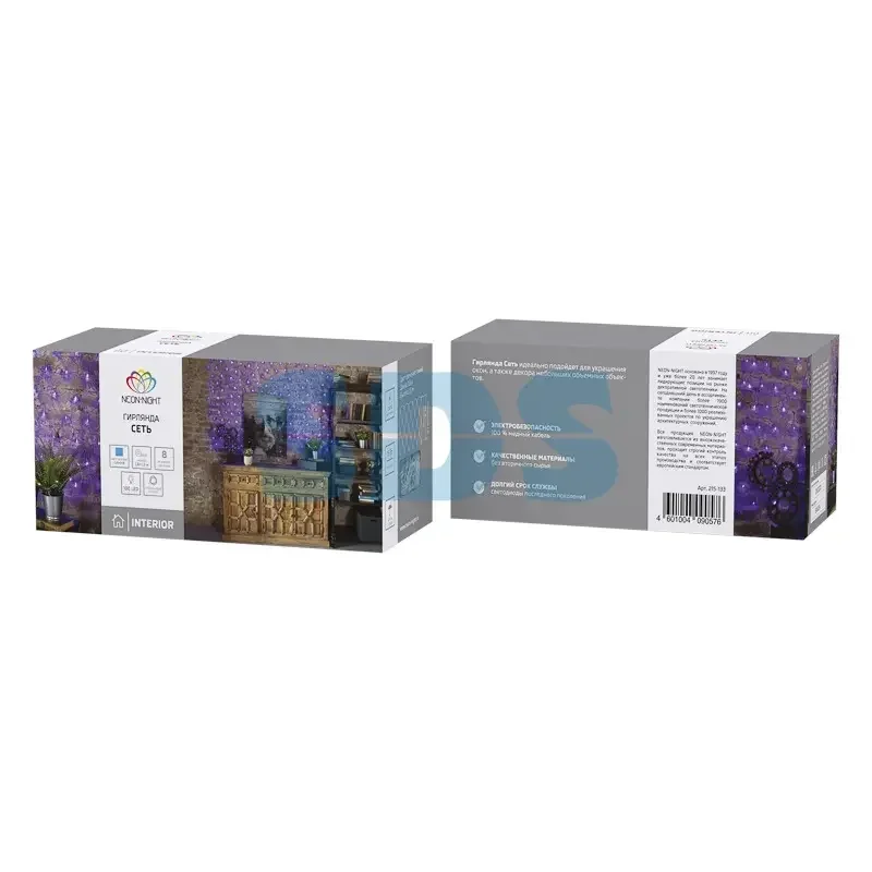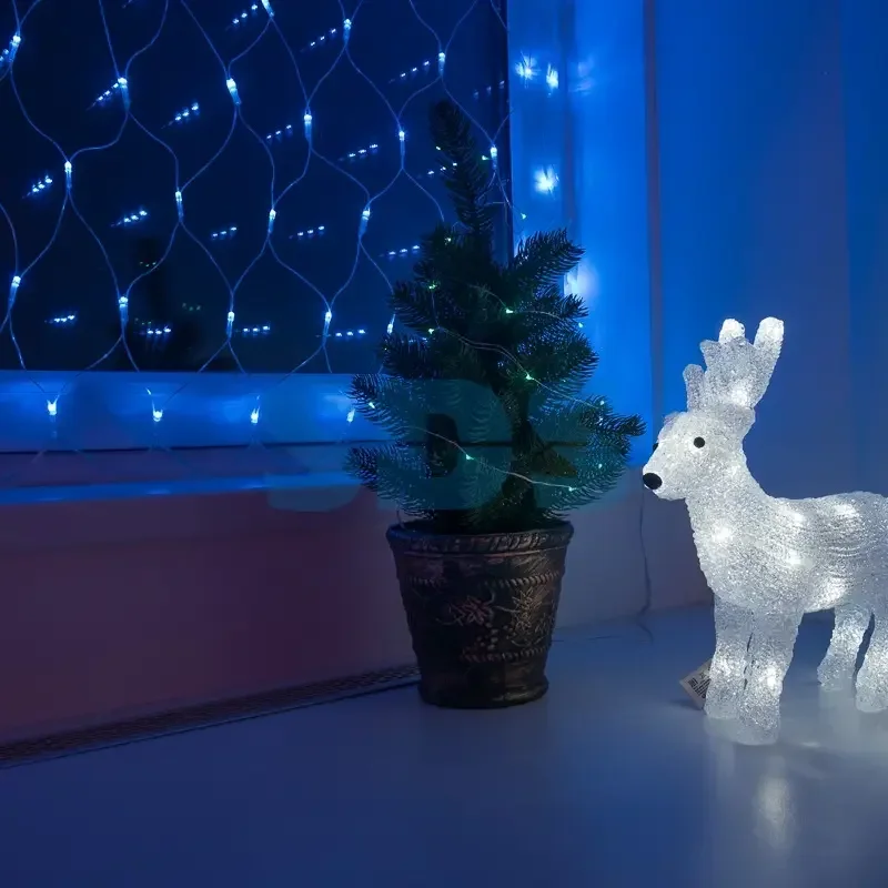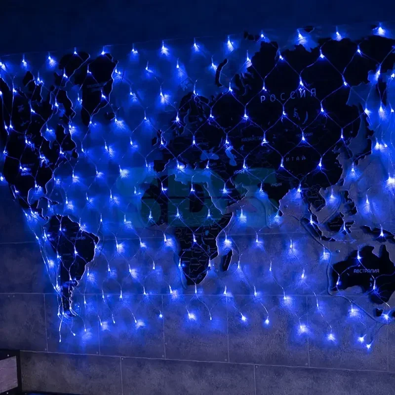 Гирлянда сеть 1,8х1,5м, Прозрачный ПВХ, 180 LED, цвет: Синий
