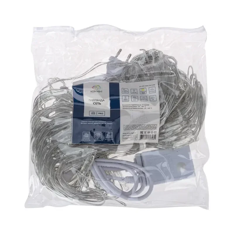 Гирлянда Сеть 2х2х1.5 м, свечение с динамикой, прозрачный ПВХ, 136 LED, 230 В, цвет свечения теплый белый