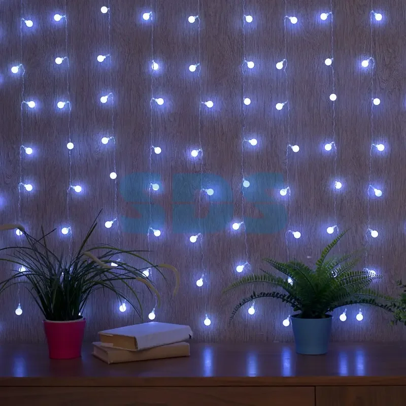 Гирлянда "Светодиодный Дождь" 1,5*1,5 м, с насадками шарики, свечение с динамикой, Прозрачный провод, 230 В, диоды Белый