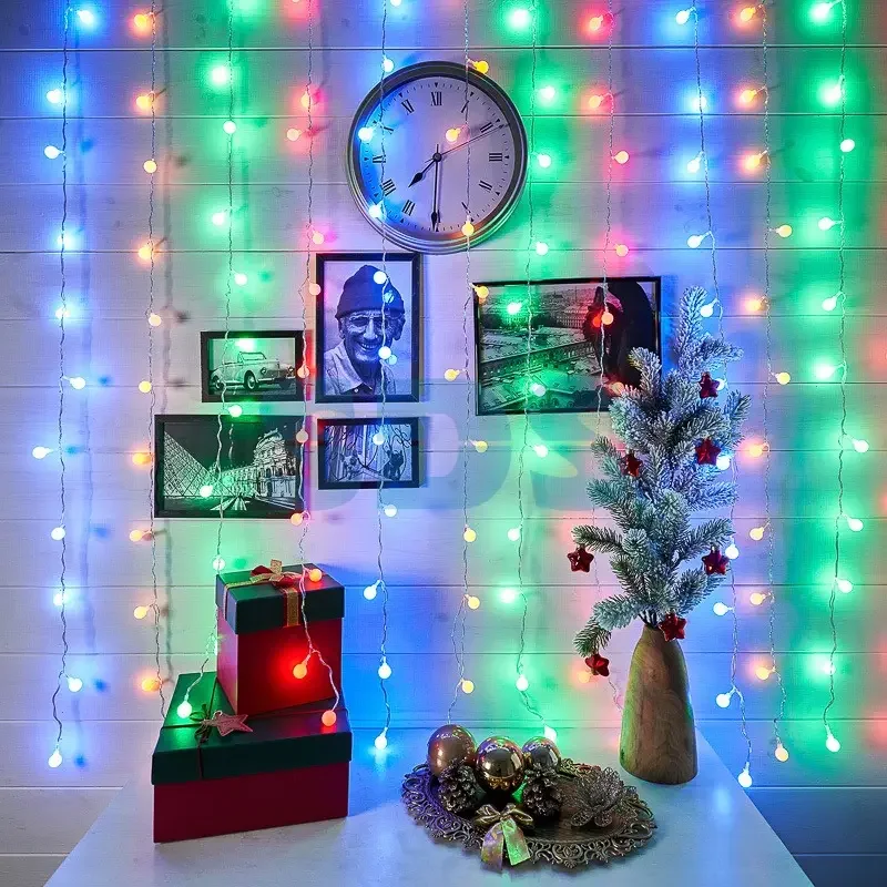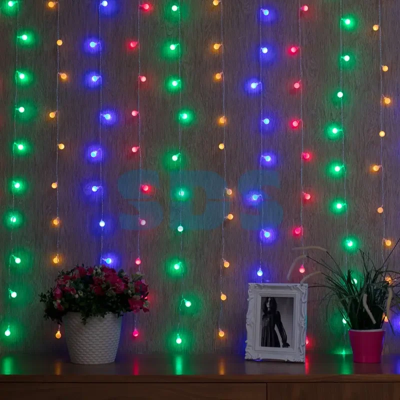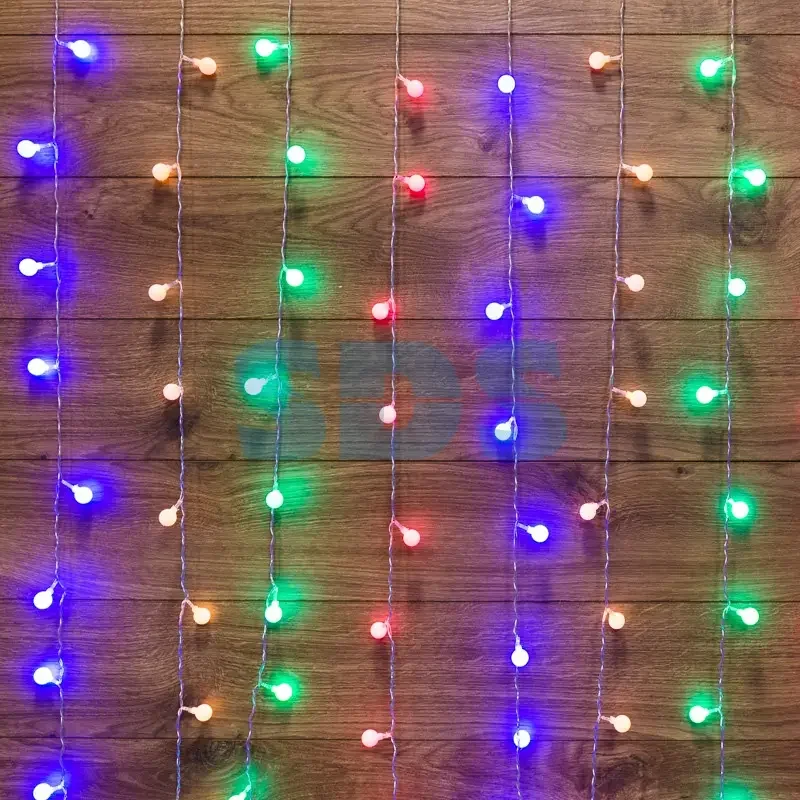 Гирлянда "Светодиодный Дождь" 1,5*1,5 м, с насадками шарики, свечение с динамикой, Прозрачный провод, 230 В, диоды Мультиколор