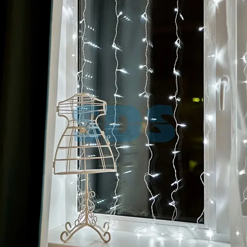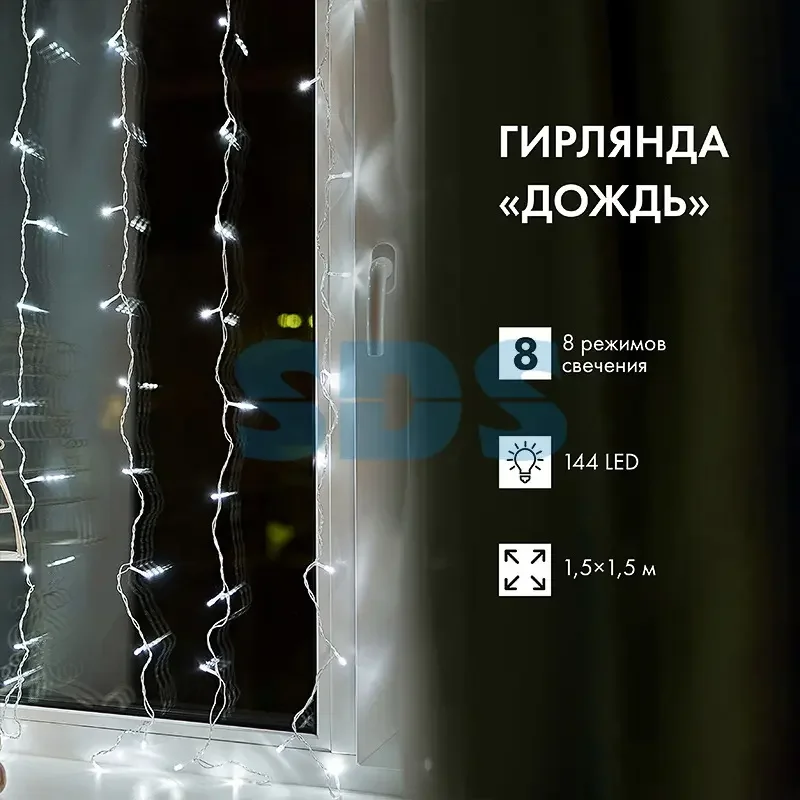 Гирлянда Светодиодный Дождь 1,5х1,5м, свечение с динамикой, Прозрачный провод, 230 В, диоды БЕЛЫЕ