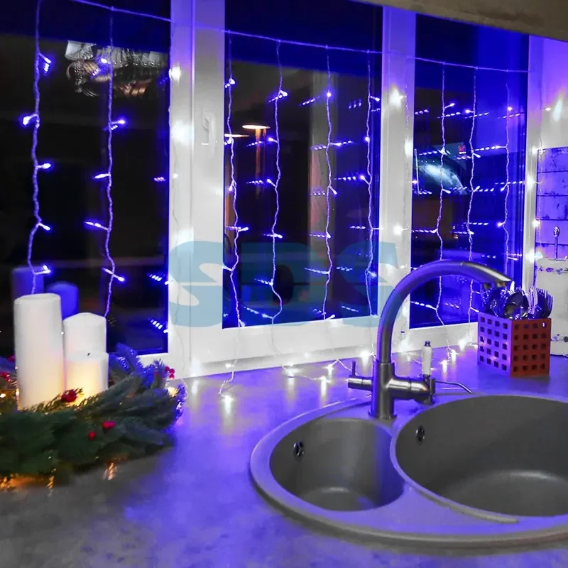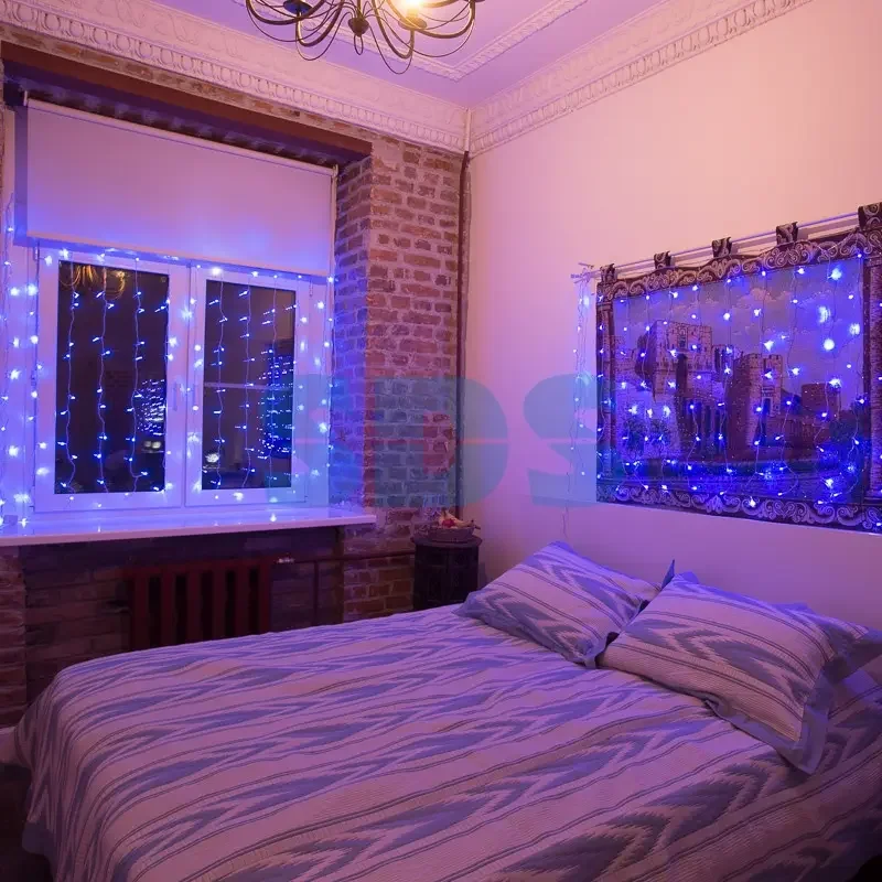 Гирлянда Светодиодный Дождь 1,5х1м, свечение с динамикой, Прозрачный провод, 230 В, диоды СИНИЕ