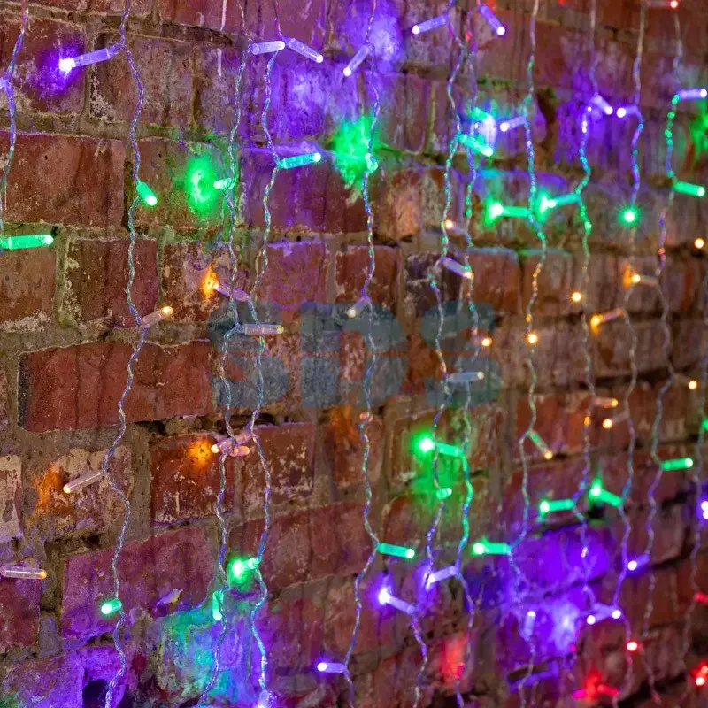 Гирлянда Светодиодный Дождь 2х1,5м, постоянное свечение, Прозрачный провод, 230 В, диоды МУЛЬТИ, 192 LED