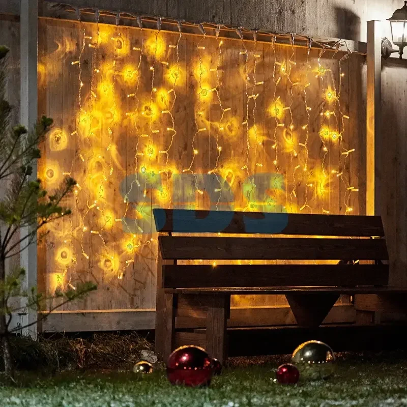 Гирлянда Светодиодный Дождь 2х1,5м, постоянное свечение, Прозрачный провод, 230 В, диоды ЖЁЛТЫЕ, 192 LED