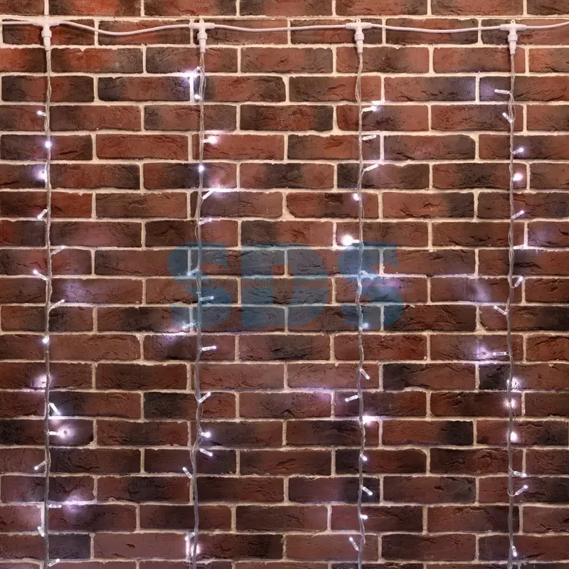 Гирлянда Светодиодный Дождь 2х6м, эффект водопада, Прозрачный провод, 24В, диоды БЕЛЫЕ, 360 LED