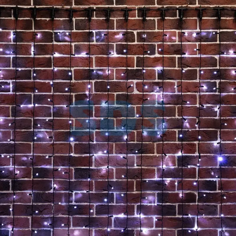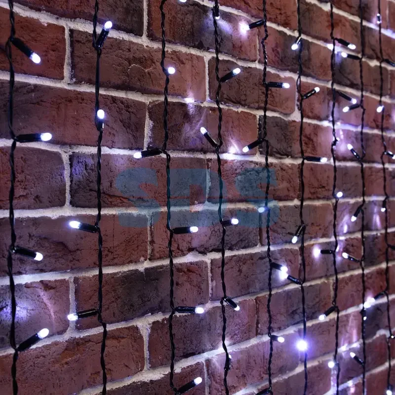 Гирлянда Светодиодный Дождь 2х6м, постоянное свечение, черный провод, 230 В, диоды БЕЛЫЕ, 1140 LED