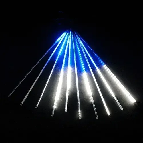 Гирлянда Тающие Сосульки 10шт по 80см, 24В, 720 Бело-Синих Светодиодов, Провод Черный ПВХ, IP55