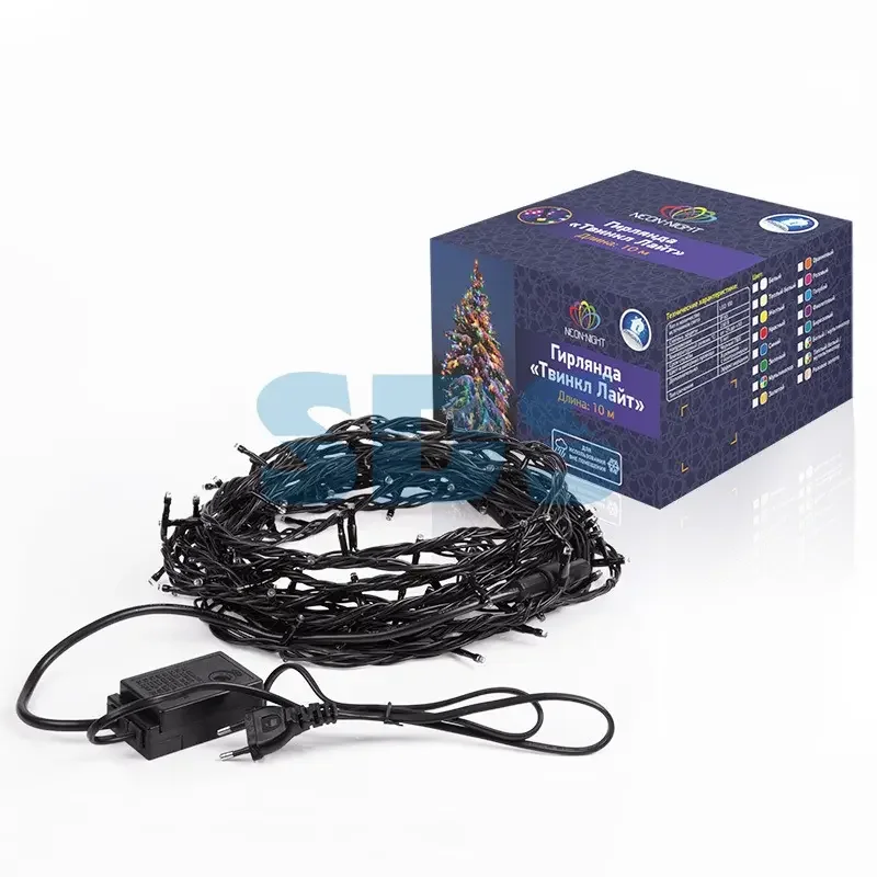 Гирлянда Твинкл Лайт 20 м, черный ПВХ, 200 диодов, цвет белый