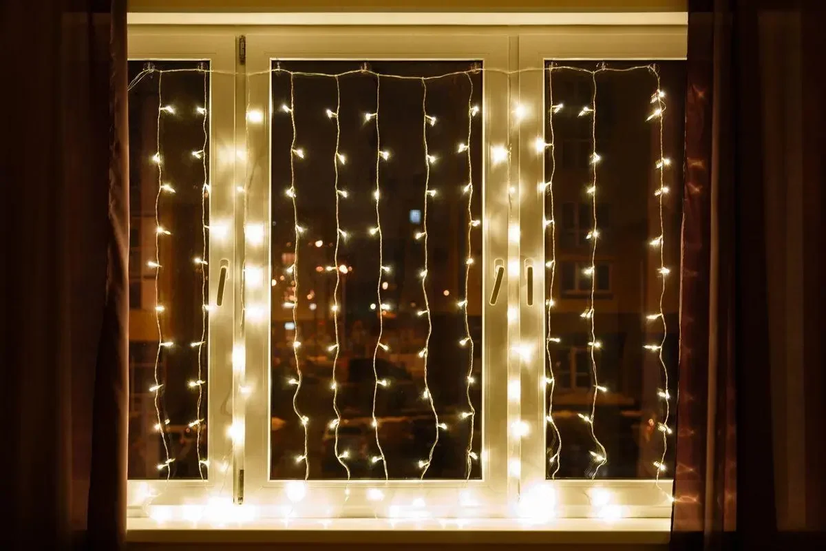 Гирлянда - занавес 230V 204 LED 2*1,5м, 2700K, эффект стробов, IP44 , сетевой шнур 3м в комплекте, CL19