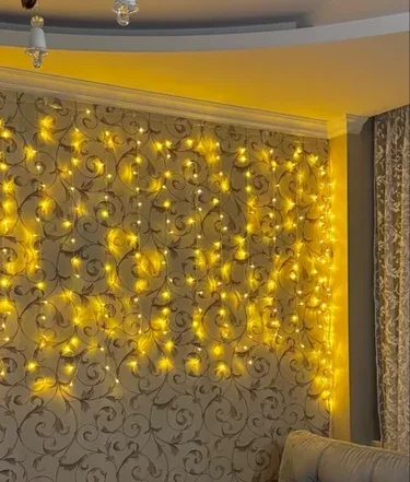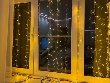 Гирлянда - занавес 230V 204 LED 2*1,5м, желтый, IP44 , сетевой шнур 3м в комплекте, CL19