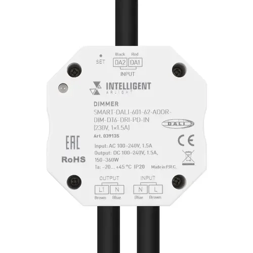INTELLIGENT ARLIGHT Диммер SMART-DALI-601-62-ADDR-DIM-DT6-DRI-PD-IN (230V, 1x1.5A) (IARL, IP20 Пластик, 5 лет)