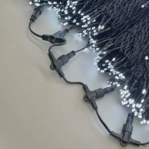 Комплект 5 Белых Нитей по 20м, 1000 LED, Провод Черный Каучук 2,3мм, IP54