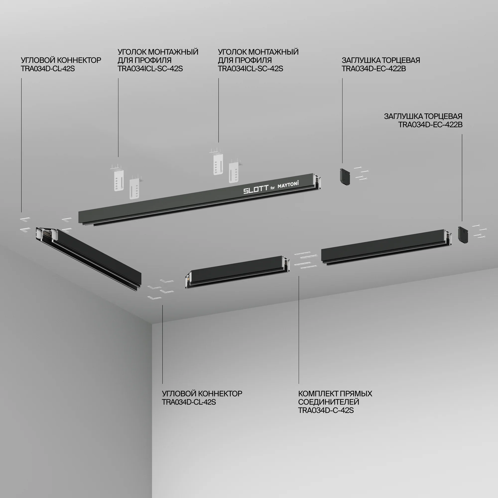 Комплект прямых соединителей для демпферного шинопровода, 4 шт, TRA034D-C-42S