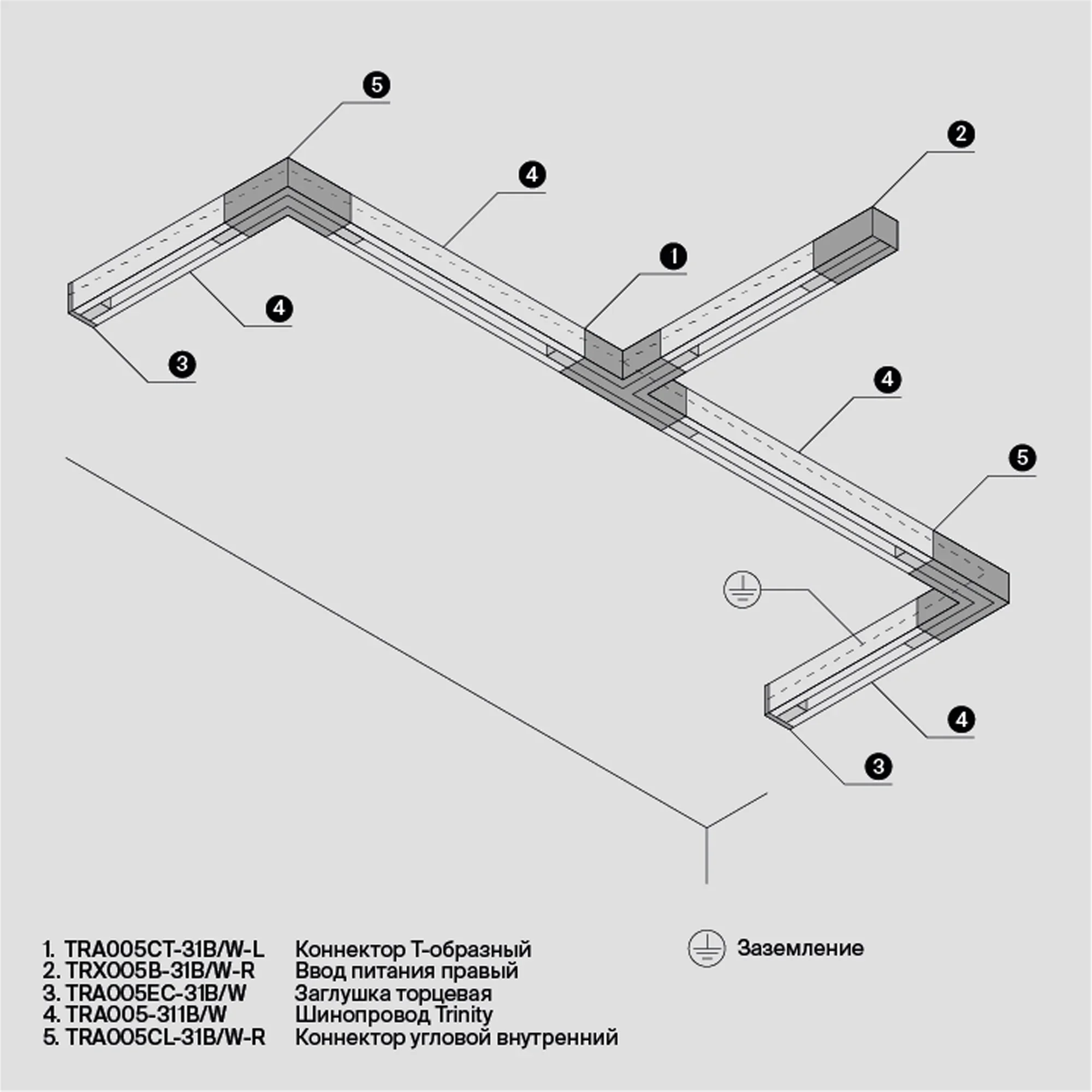 Коннектор Т-образный левый Trinity черный, TRA005CT-31B-L