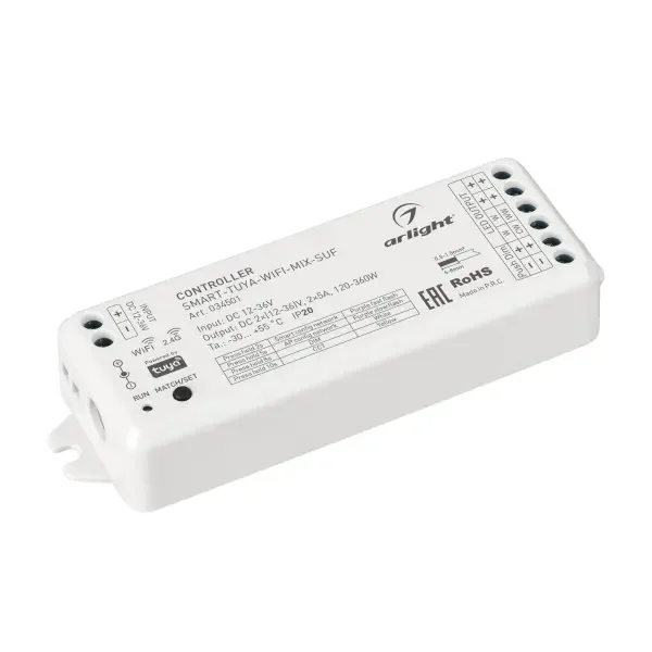 Контроллер SMART-TUYA-WIFI-MIX-SUF (12-36V, 2x5A, 2.4G) (Arlight, IP20 Пластик, 5 лет)