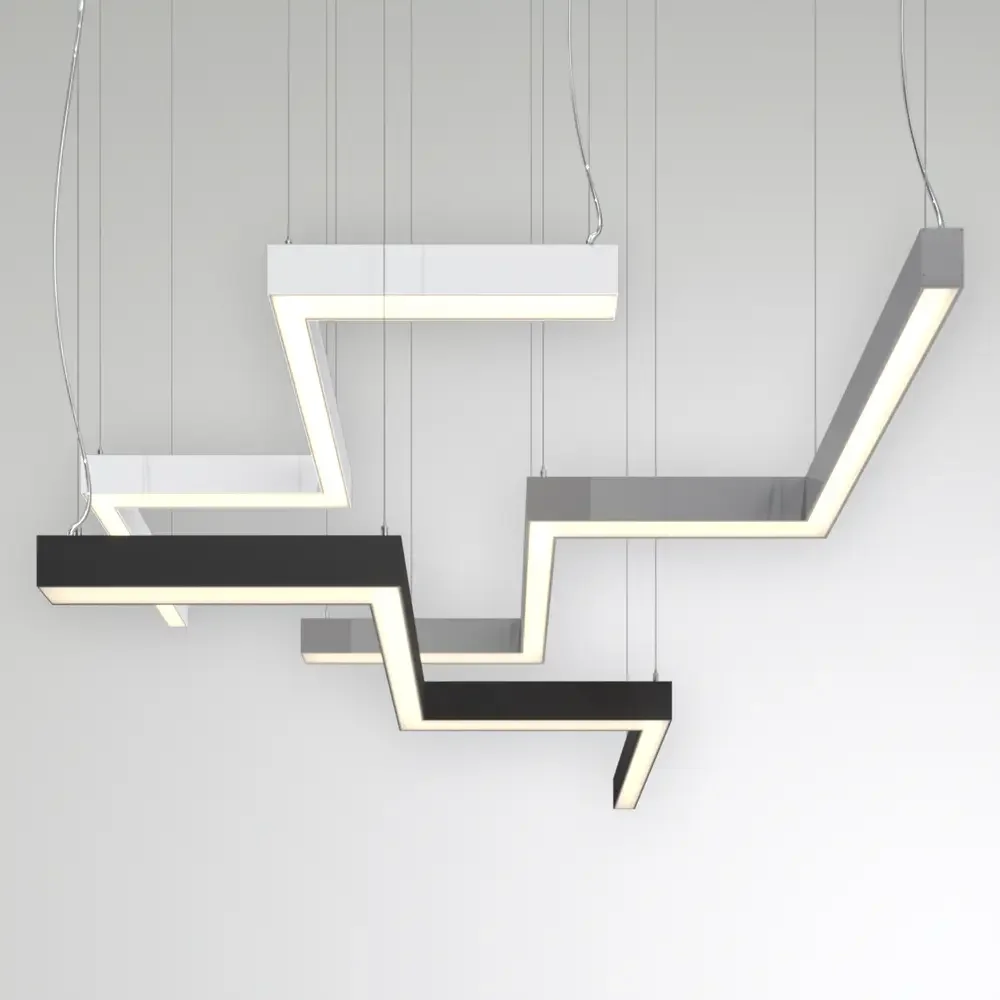 Профильные подвесные светодиодные светильники в форме Зигзага выполняют двойную функцию: освещают помещение, а также служат оригинальным, декоративным элементом в современном стиле.