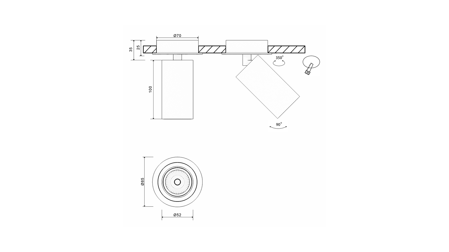 Крепление сменное М4 для светильников MINI VILLY, поворотное встраиваемое, цвет Черный, MINI-VL-M4-BL