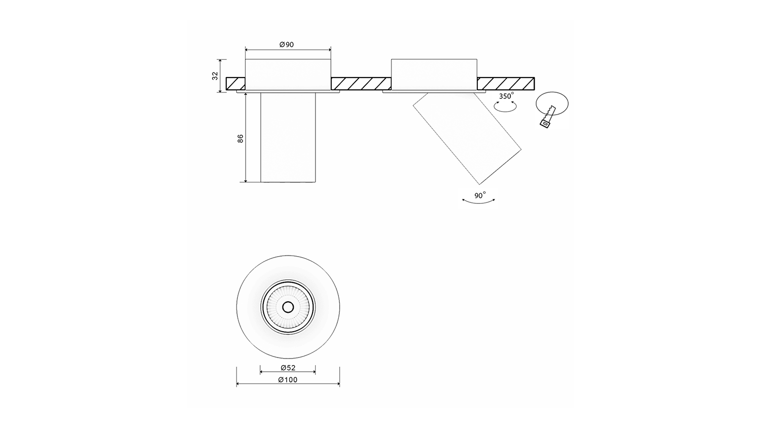 Крепление сменное М7 для светильников MINI VILLY, поворотное встраиваемое углубленное, цвет Белый, MINI-VL-M7-WH