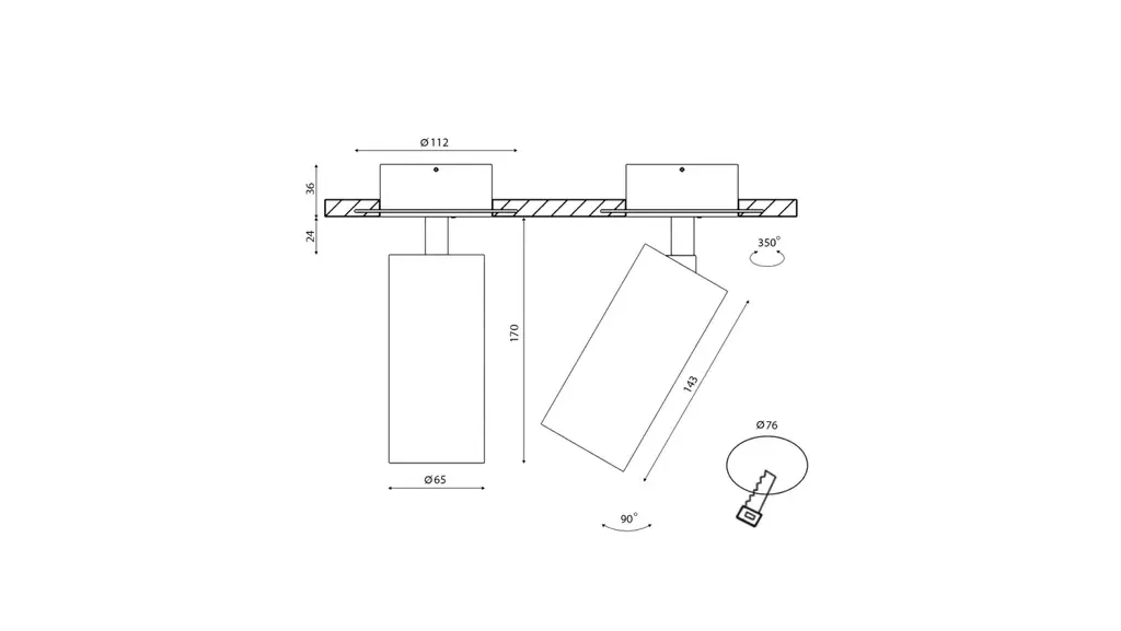 Крепление сменное М1 для светильников VILLY, поворотное встраиваемое в гипсокартон, цвет Черный, VL-M1-BL
