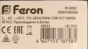 Лампа светодиодная, (13W) 230V E27 4000K A60, LB-1013