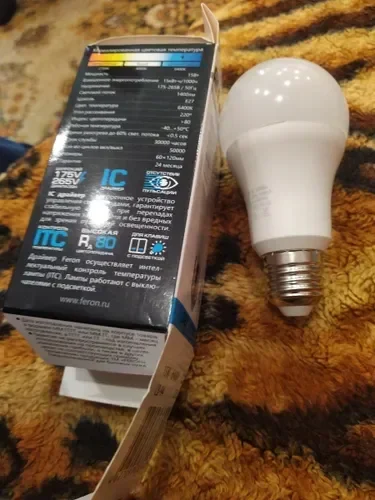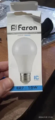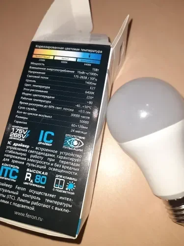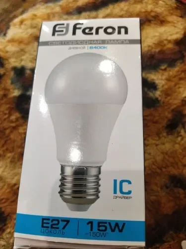 Лампа светодиодная, (15W) 230V E27 6400K A60, LB-94