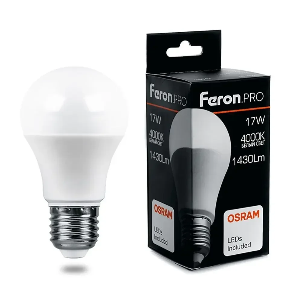 Лампа светодиодная, (17W) 230V E27 4000K A65, LB-1017