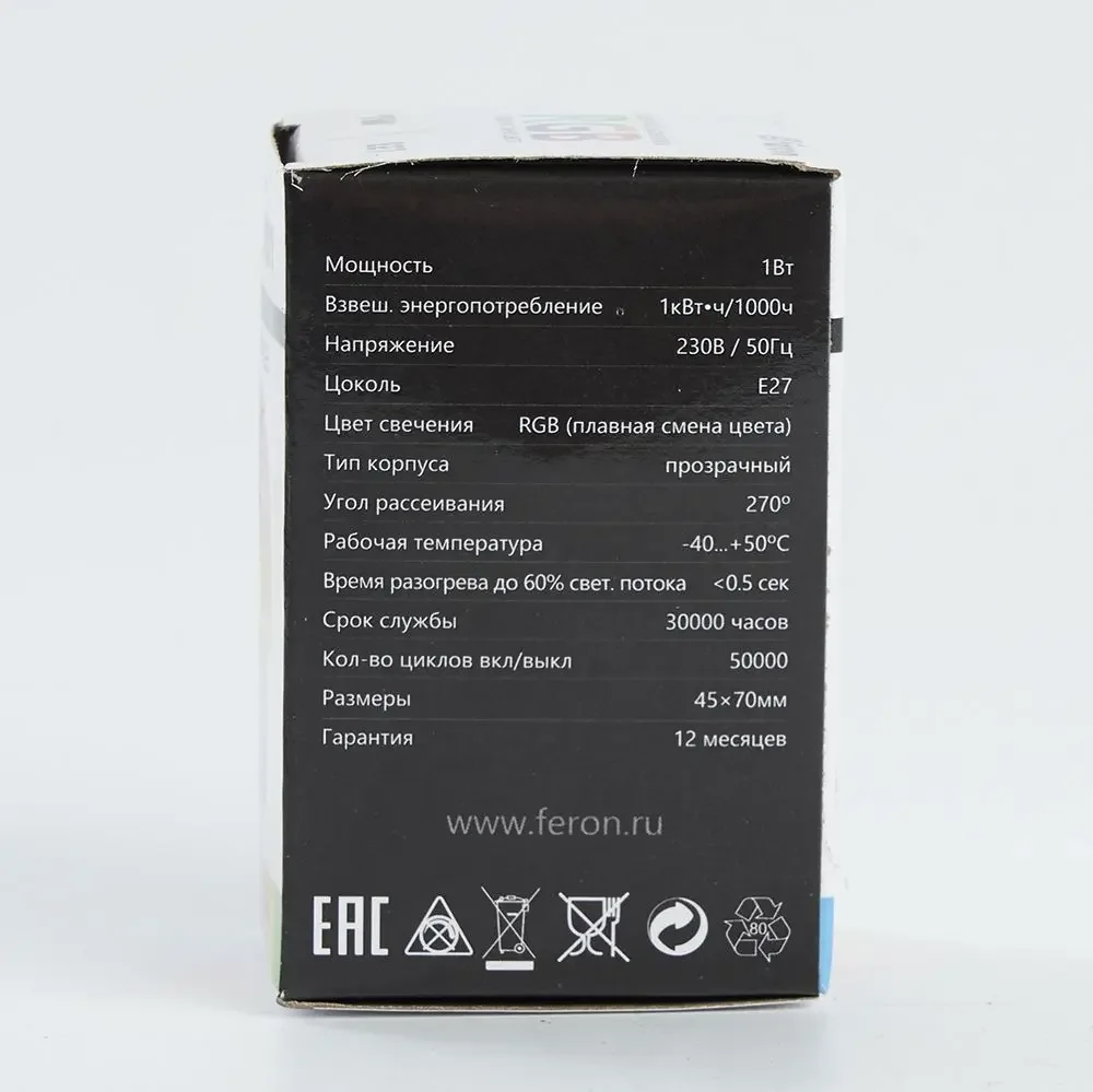 Лампа светодиодная, (1W) 230V E27 RGB G45, LB-37 прозрачный плавная смена цвета