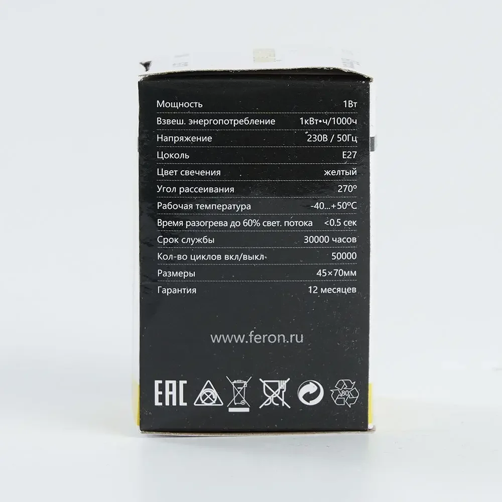 Лампа светодиодная, (1W) 230V E27 желтый G45, LB-37
