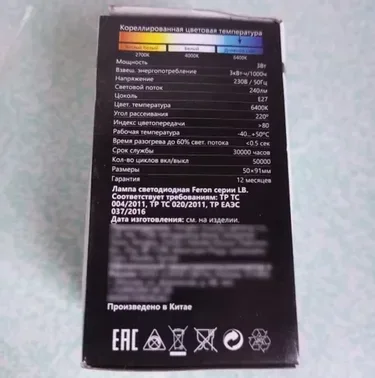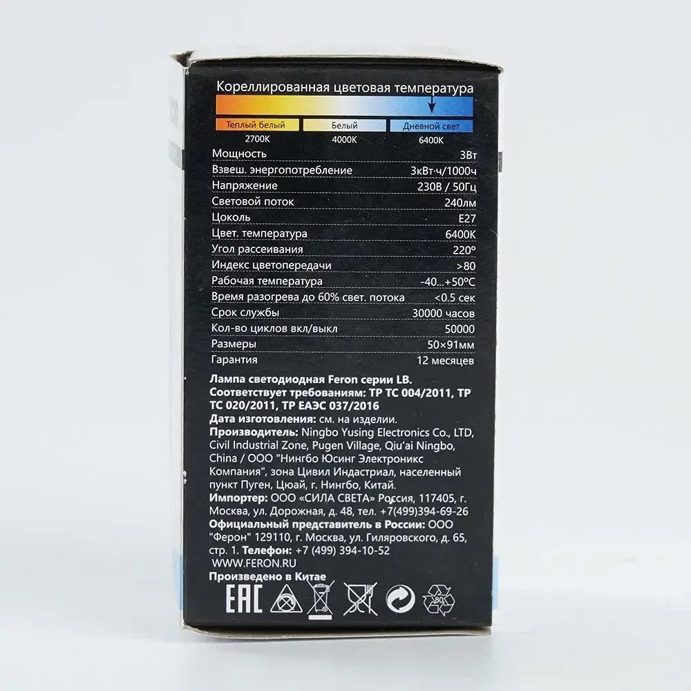 Лампа светодиодная, (3W) 230V E27 6400K A50, LB-375