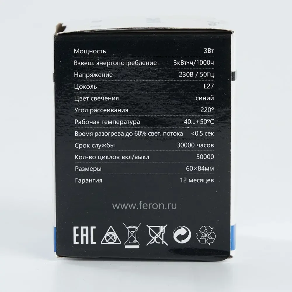 Лампа светодиодная, (3W) 230V E27 синий G60, LB-371
