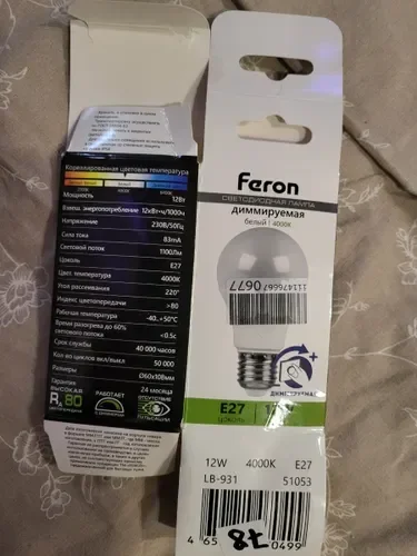 Лампа светодиодная диммируемая Feron LB-931 Шар E27 12W 230V 4000K, 51053